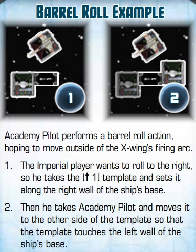 - Amikor egy nagy hajó hajt végre egy barrel roll akciót, akkor a sablonnak nem a végét tesszük a hajó oldalához, hanem a hosszabb oldalát. A barrel roll-ra vonatkozó összes többi szabály ellenben ugyanúgy életben marad.